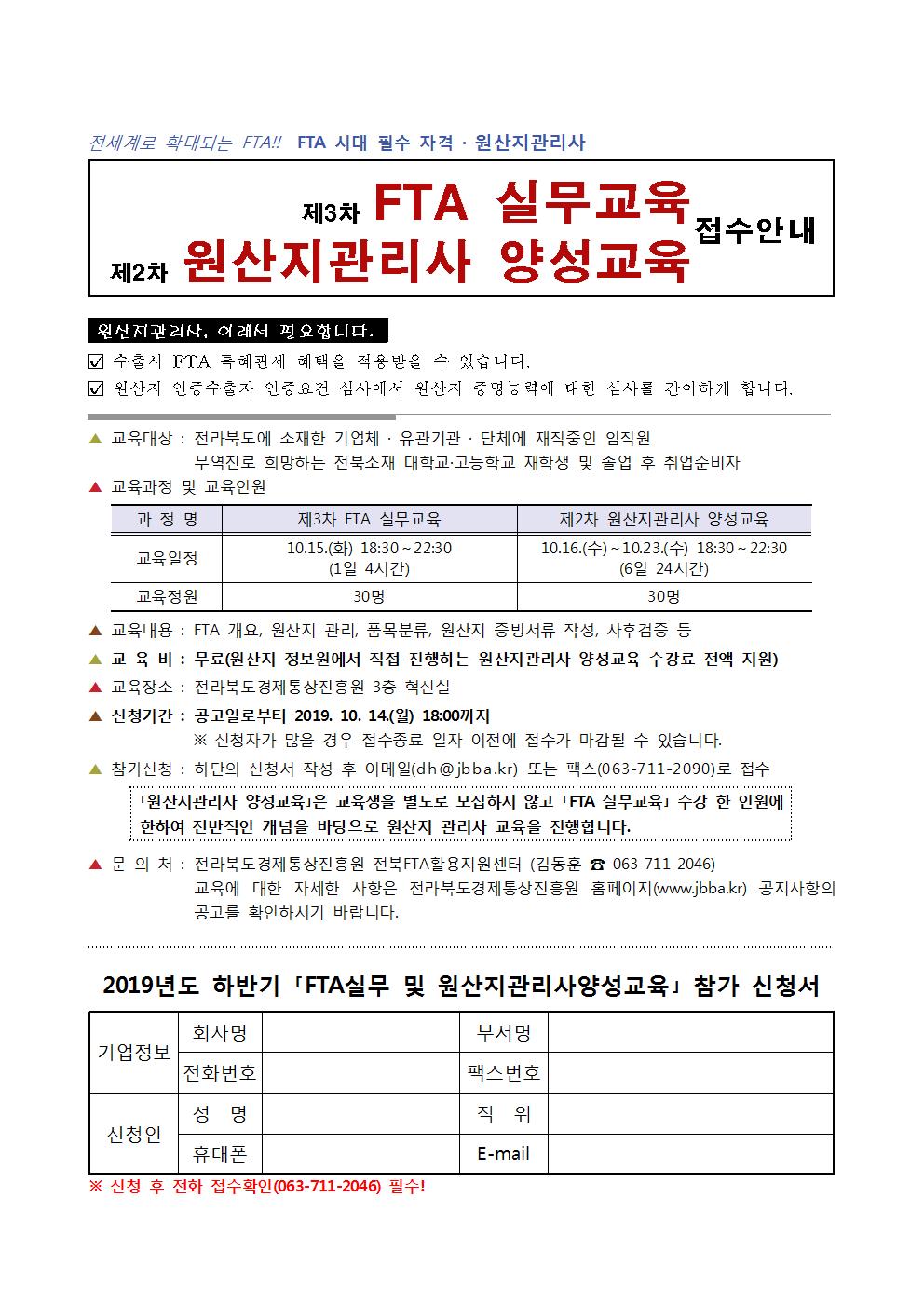 ☆ FTA실무교육 및 원산지관리사 양성교육 안내 ☆